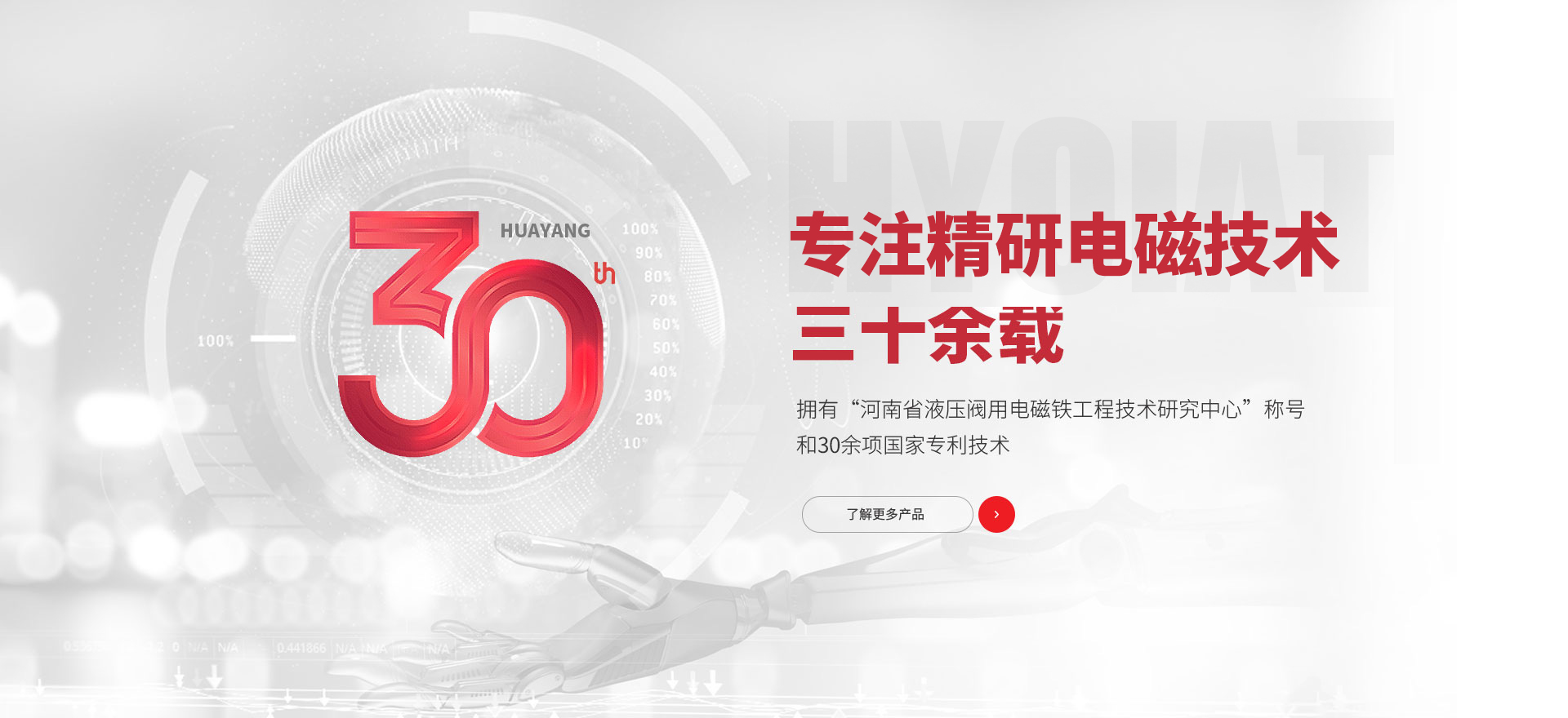 安陽市華陽電磁鐵制造有限公司成立于1998年,位于河南省安陽市中原高新技術產業開發區,占地面積50畝,是一家集電磁鐵研發、制造、銷售為一體的國家高新技術企業。公司先后通過ISO9001:2015質量管理體系、IATF16949:2016質量管理體系認證,擁有多項科技成果及數十項專利,并建有“河南省液壓閥用電磁鐵工程技術研究中心”、“河南省企業技術中心”、“高性能電磁鐵工程技術研究中心”。公司主導產品有開關型、比例型、防爆型、插裝型電磁鐵,LVDT傳感器等,并支持定開發專用電磁鐵。產品廣泛應用于工程機械、塑料機械、數控機床、冶金、紡織、鐵路運輸、電力、石油化工、航空航天領域。